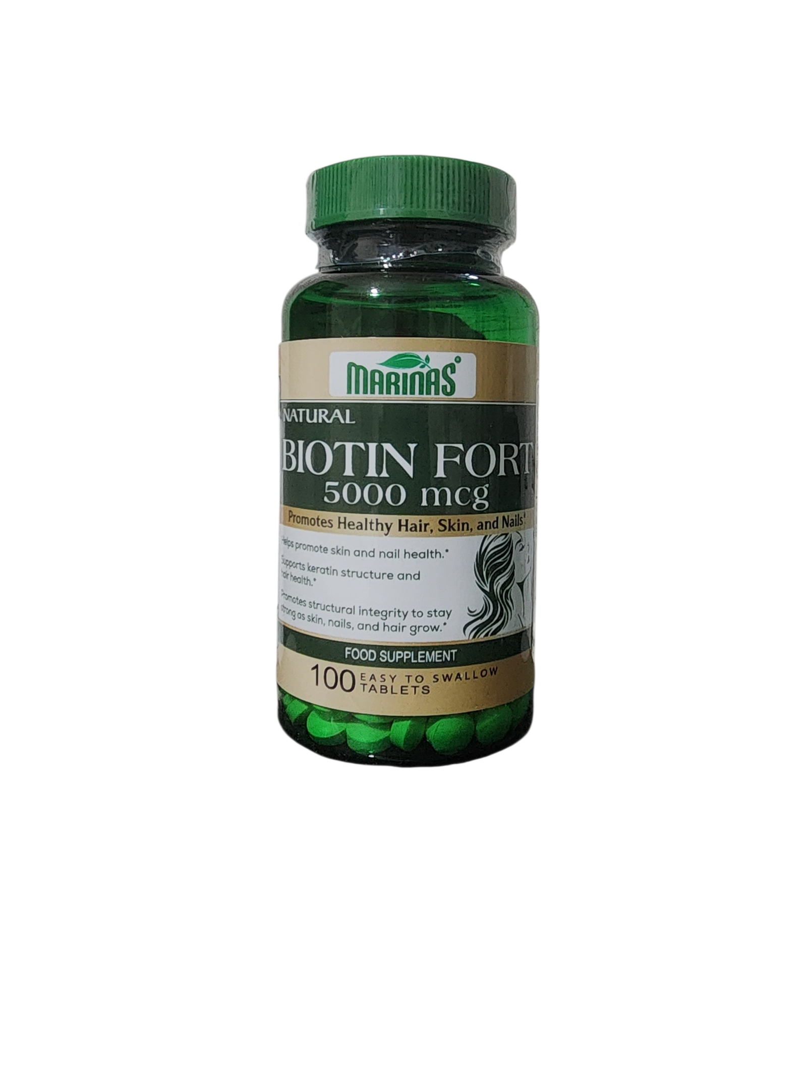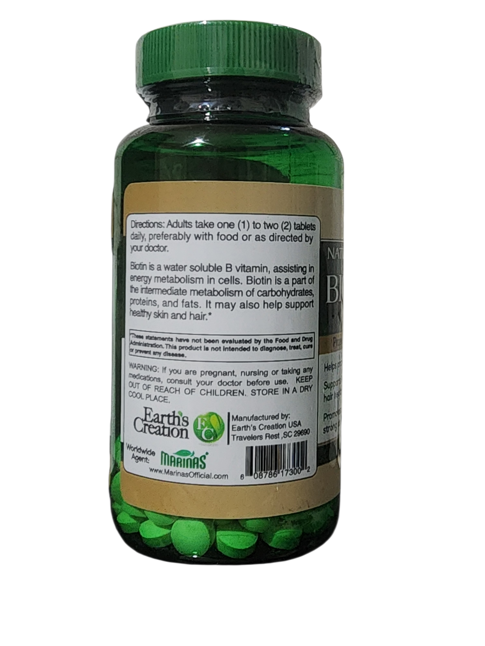 Biotin is the most widely used vitamin for healthy hair. Biotin 5,000mcg combines science innovation to help support and maintain healthy, beautiful hair and healthy skin and nails. Biotin plays an important role in the health of your skin by helping to form fatty acids that nourish skin. It also supports healthy hair and nails. For energy metabolism, your body needs biotinTo help convert certain nutrients into cellular energy. It also helps repairNerves. Biotin also converts fatty acids into amino acids that are essential for neurological function optimum brain